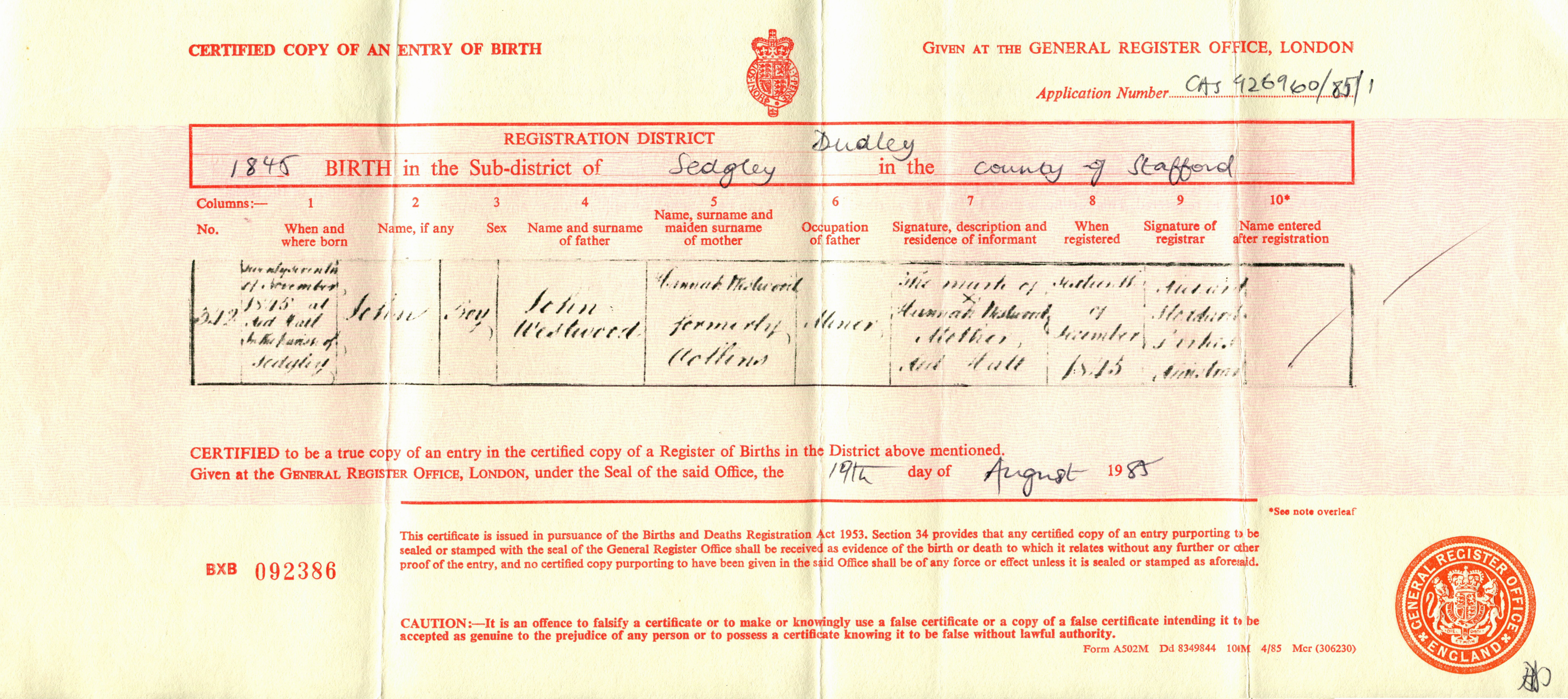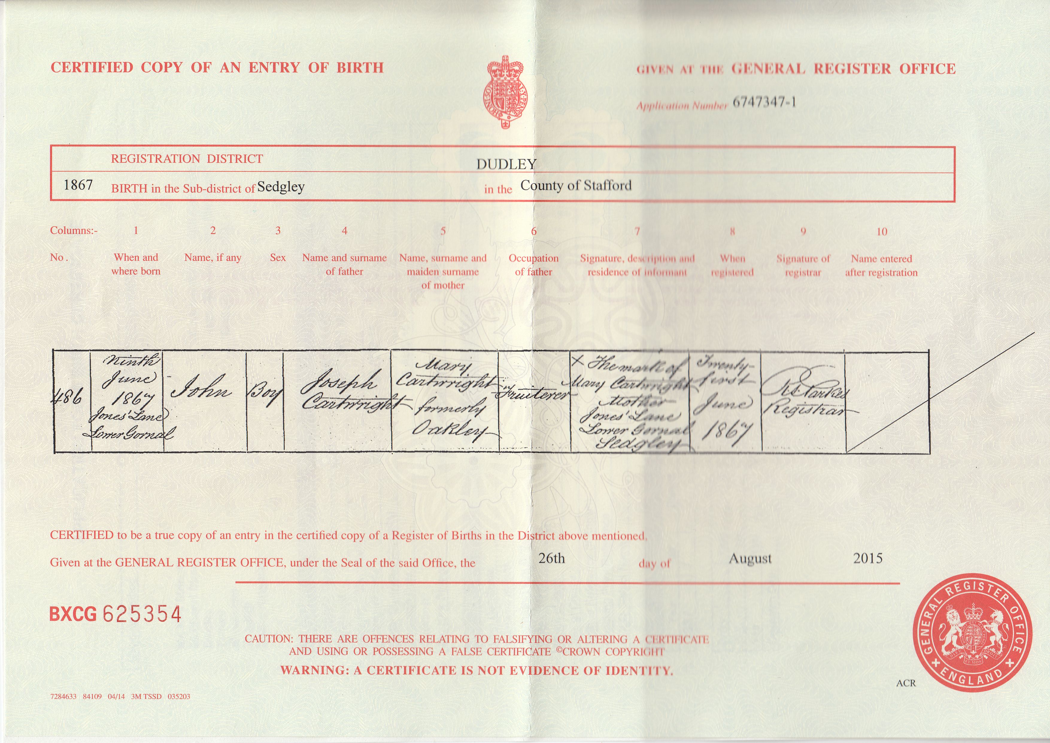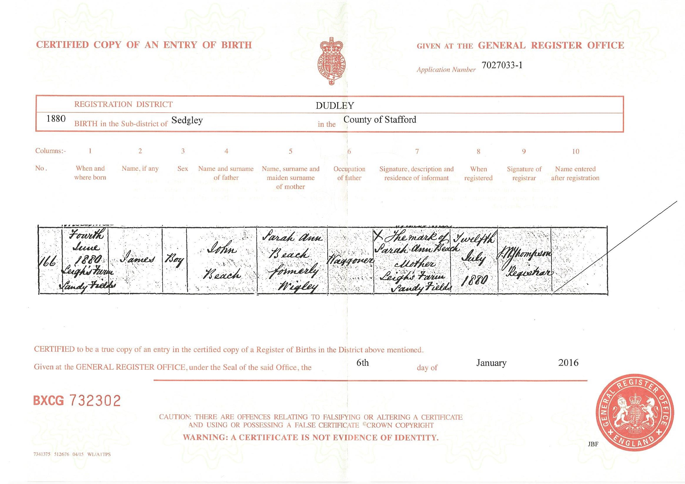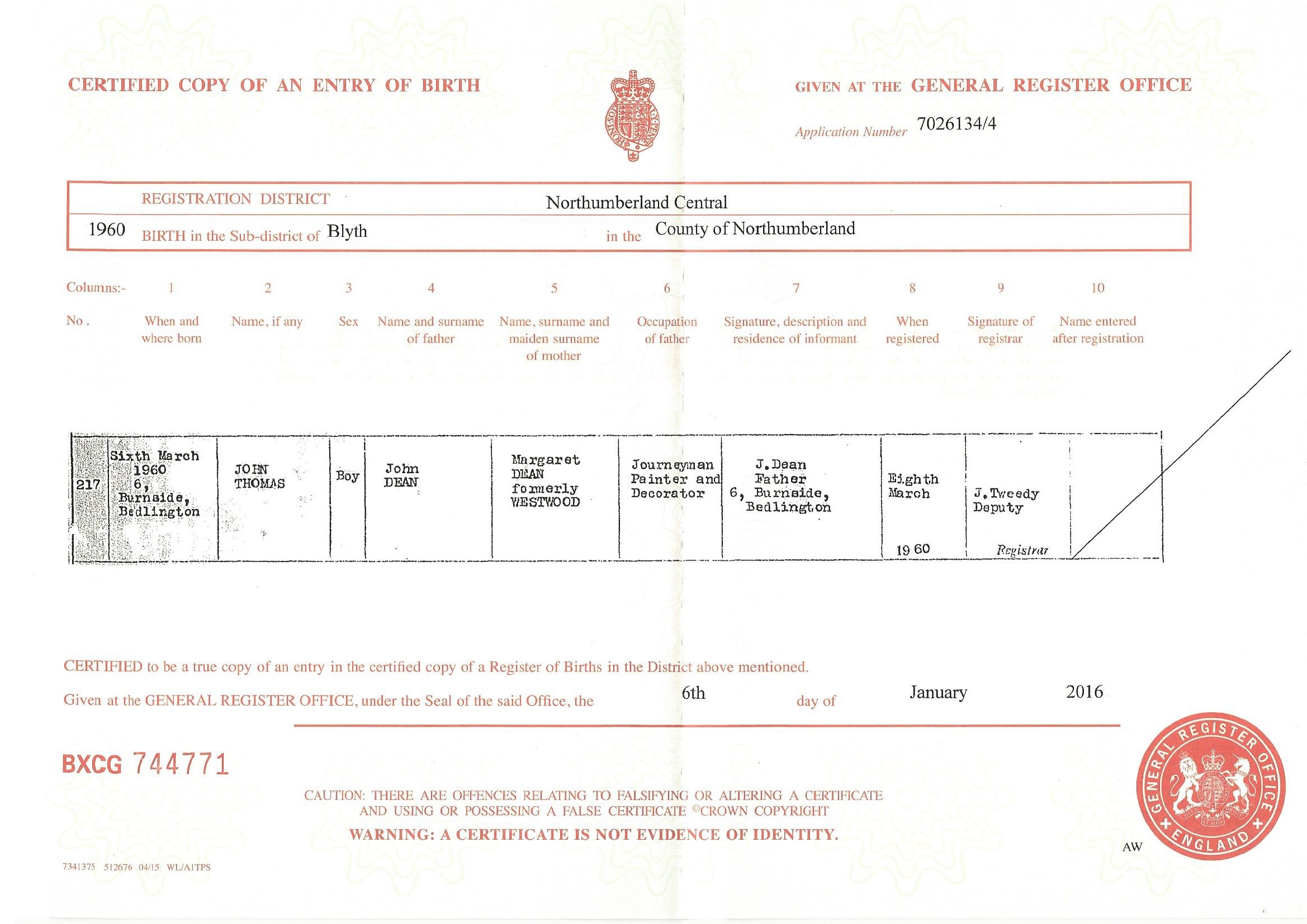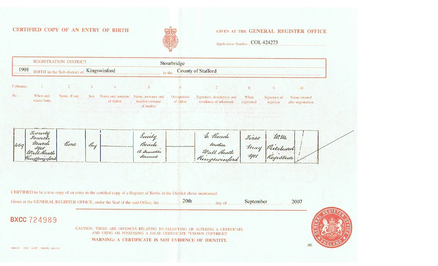 Birth Cert for John ..>