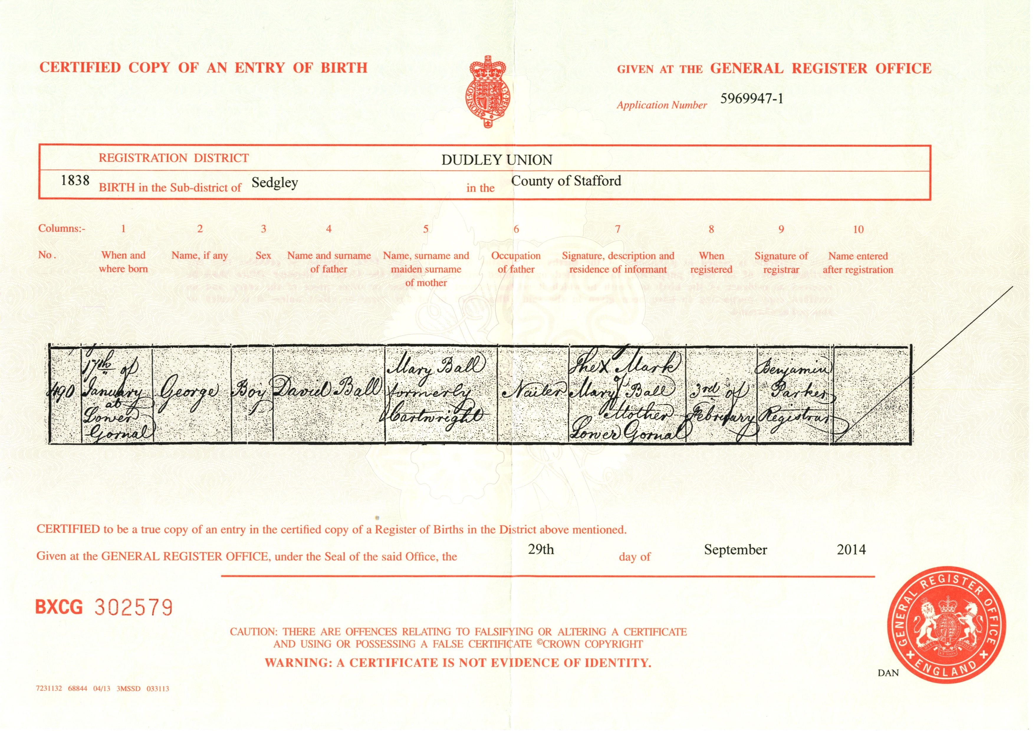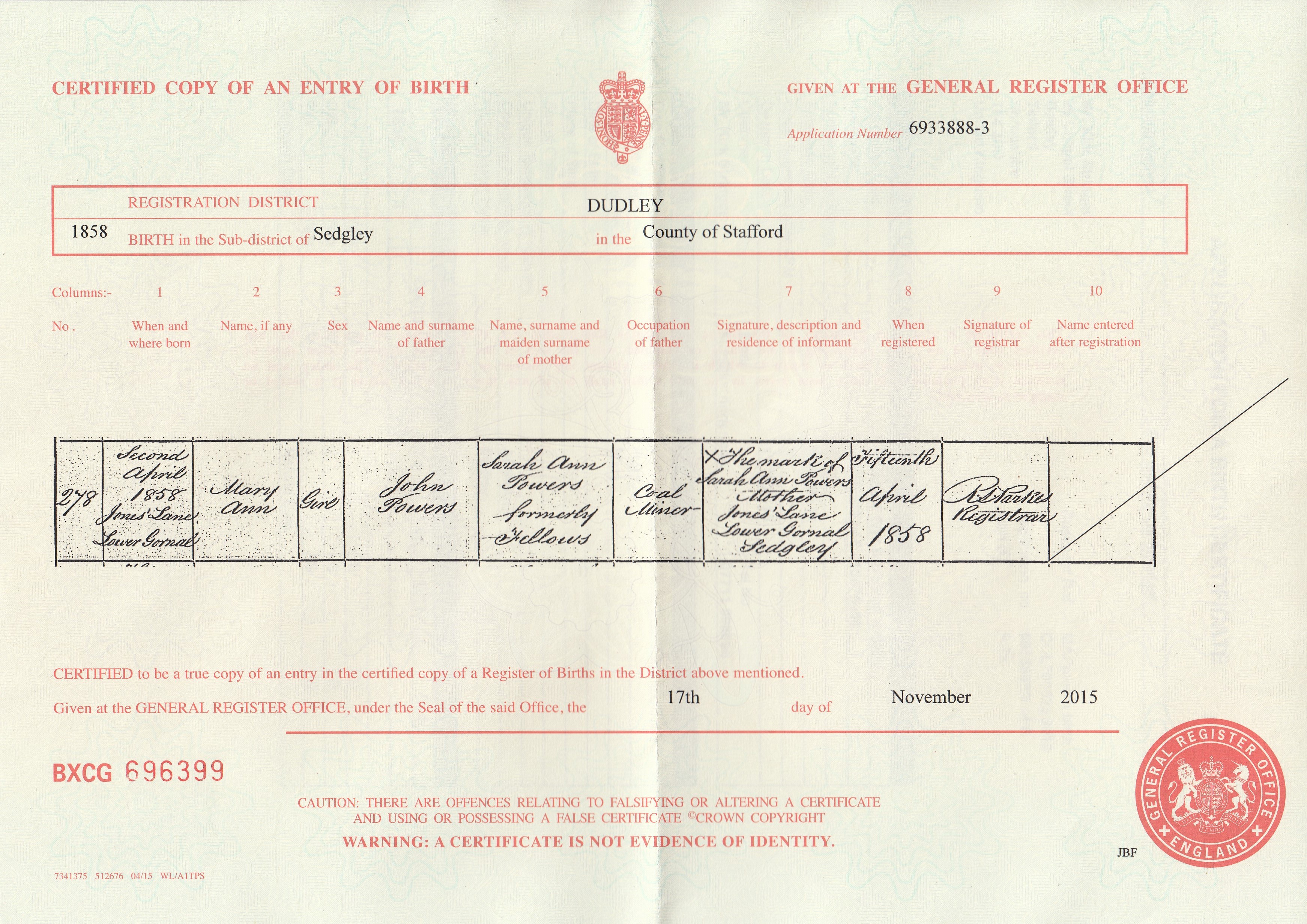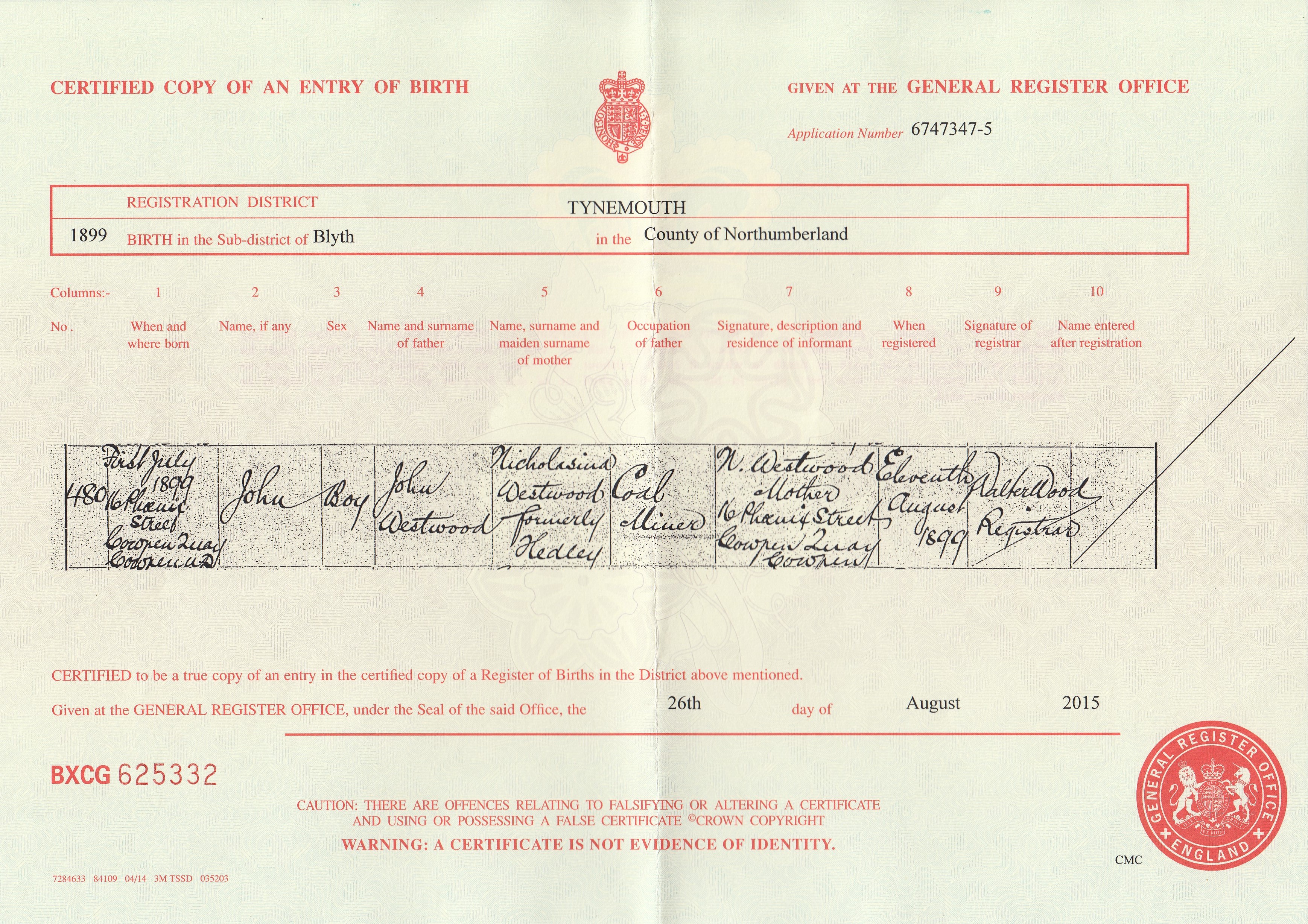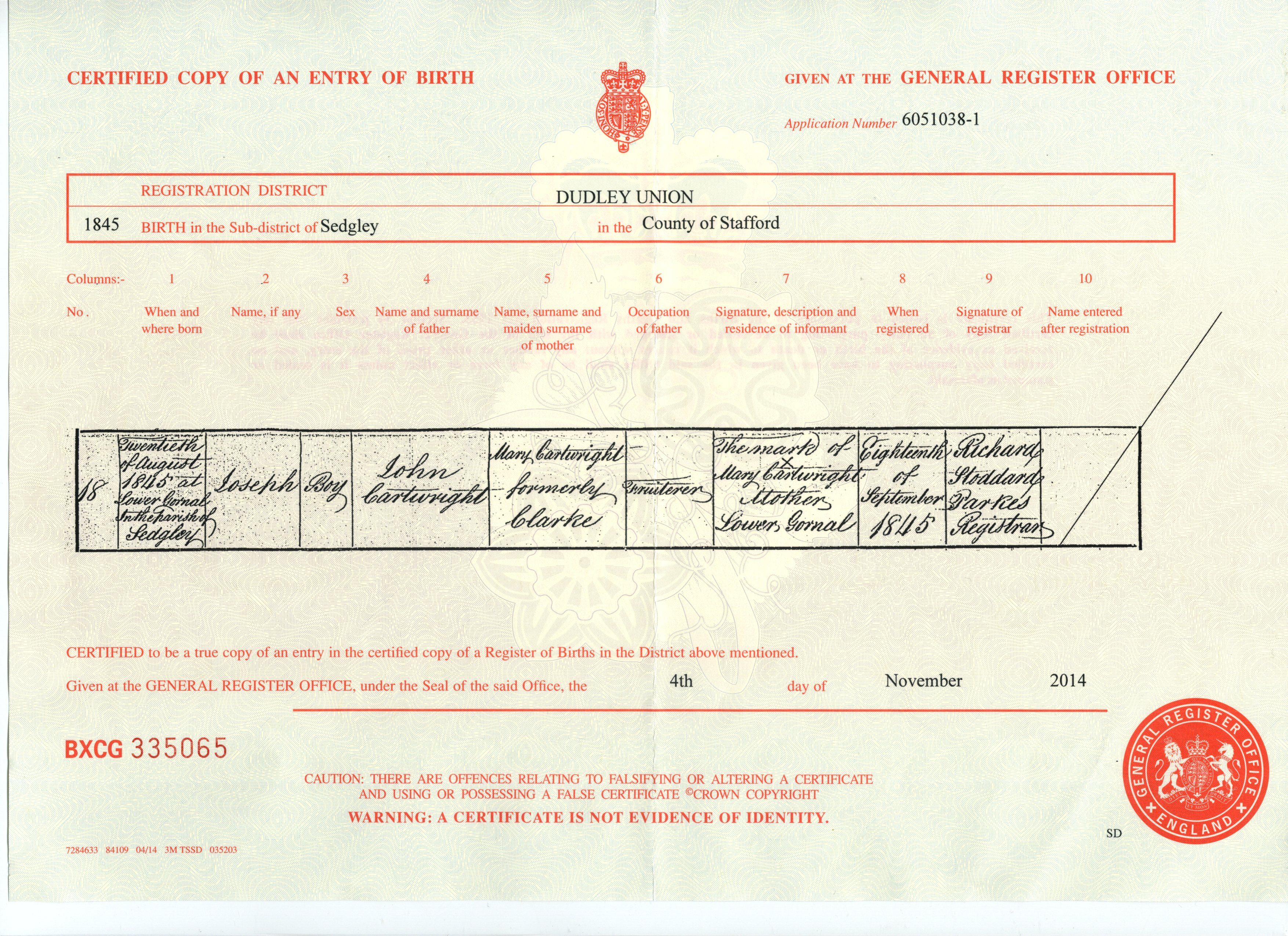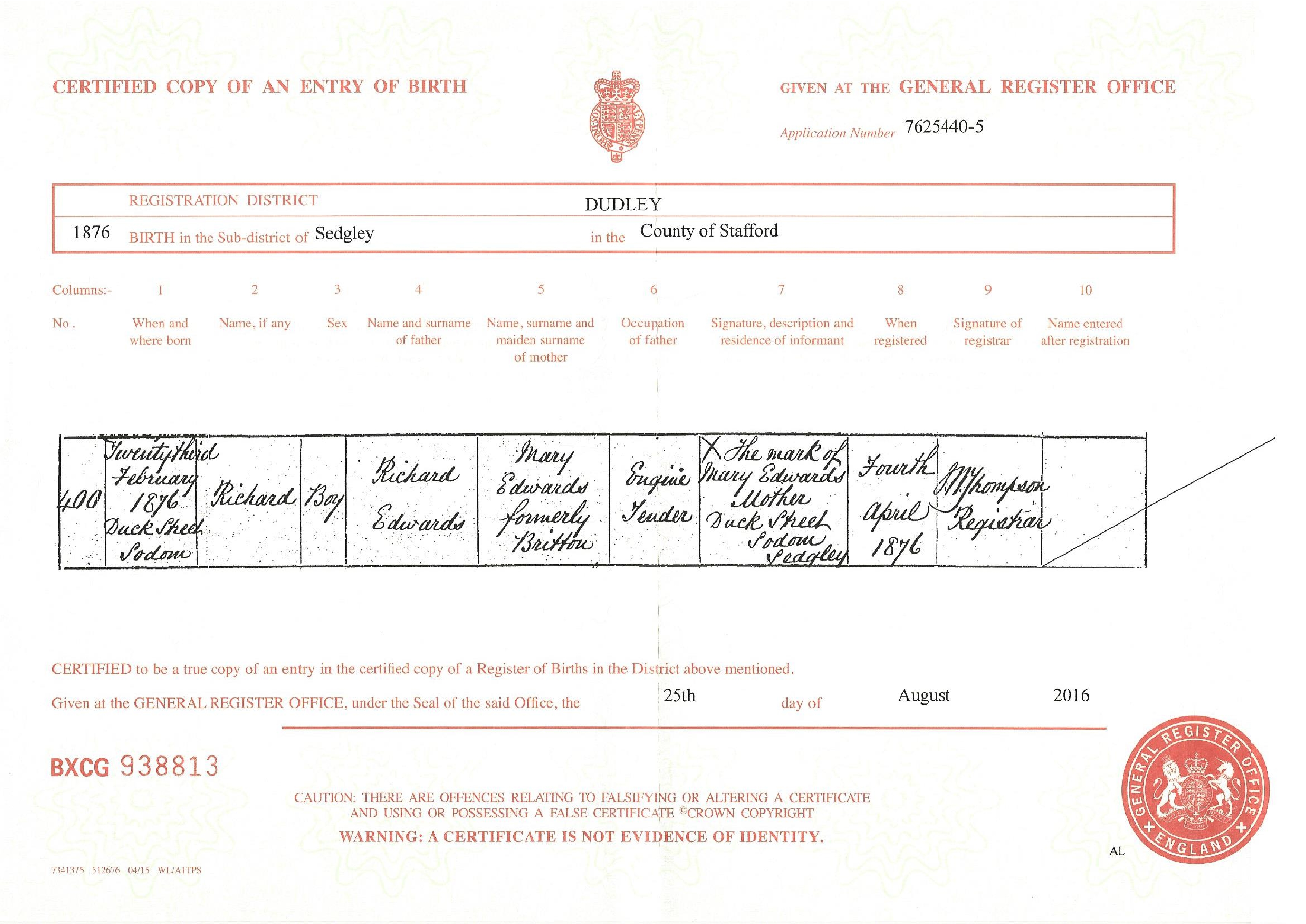 Birth Cert for John ..>