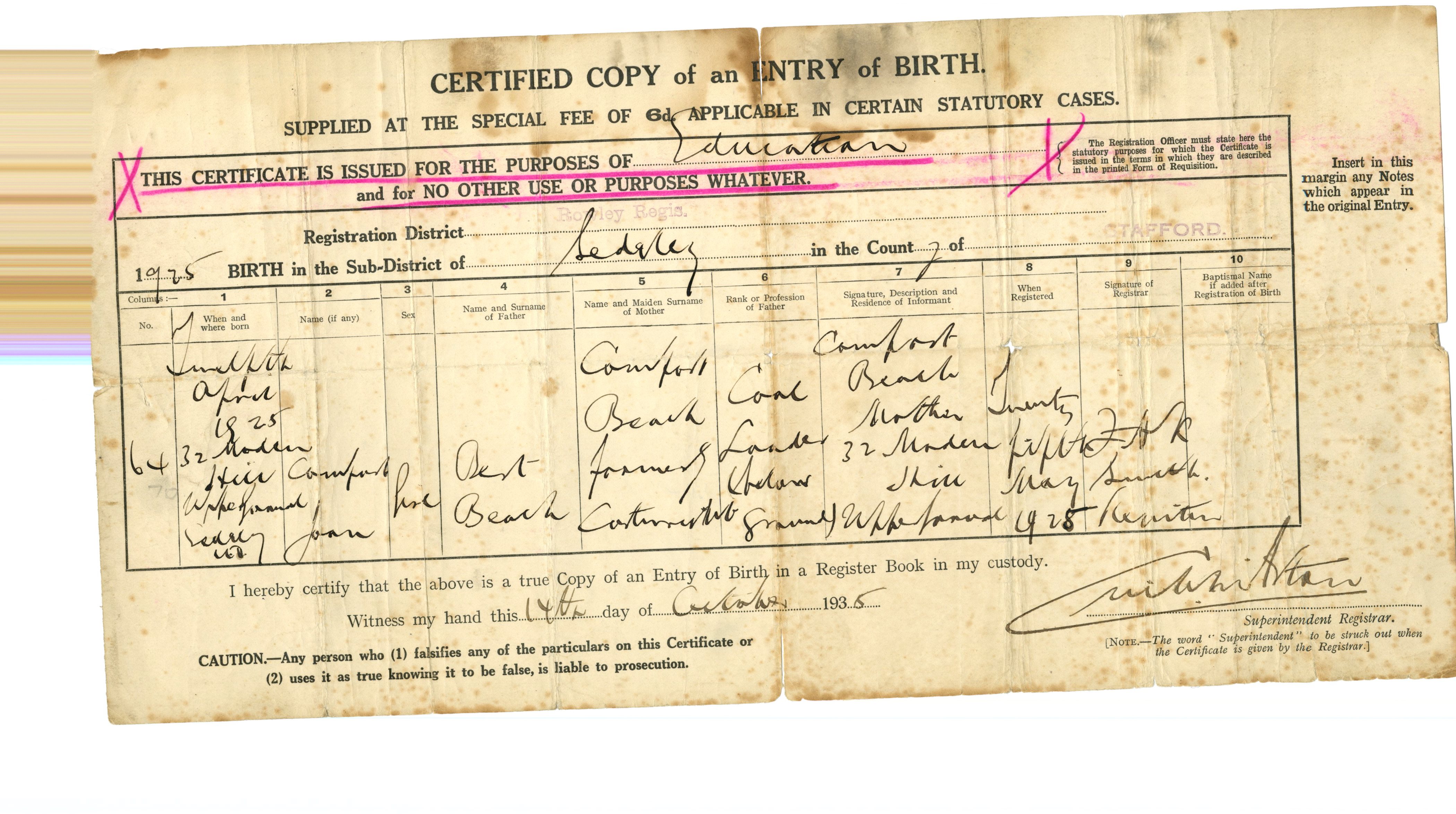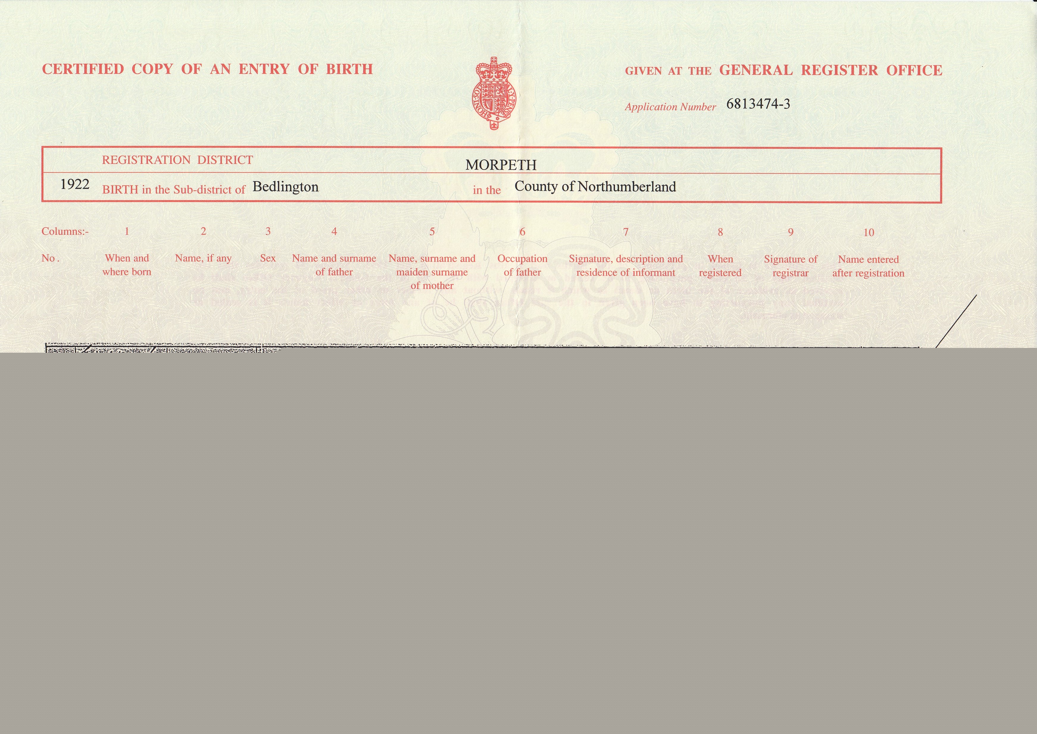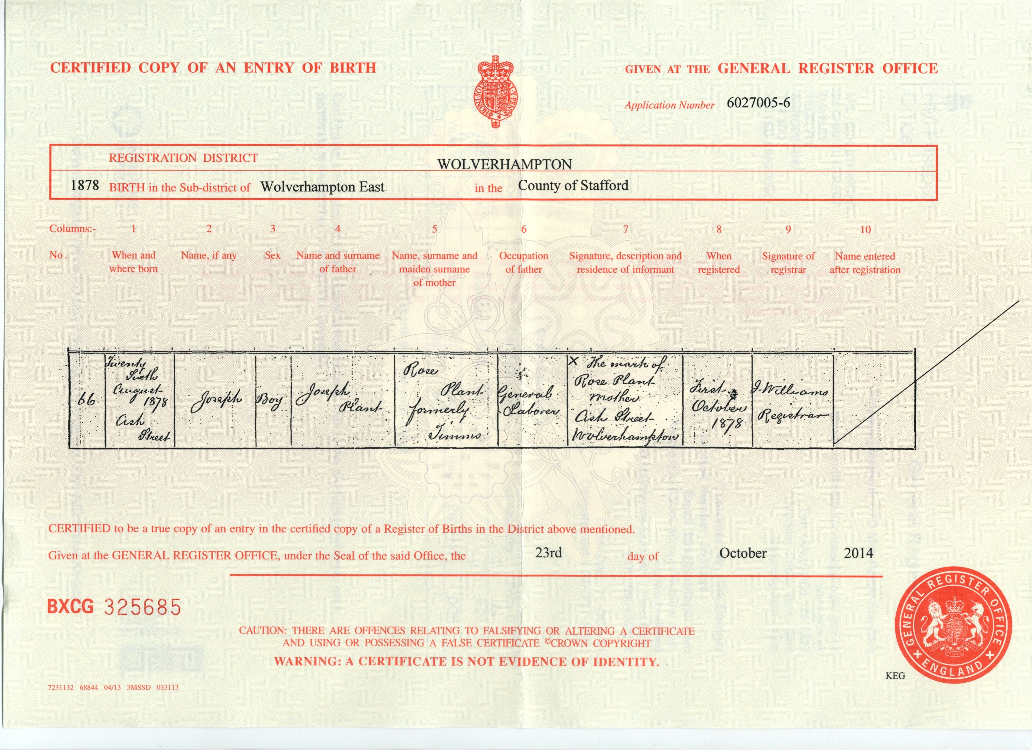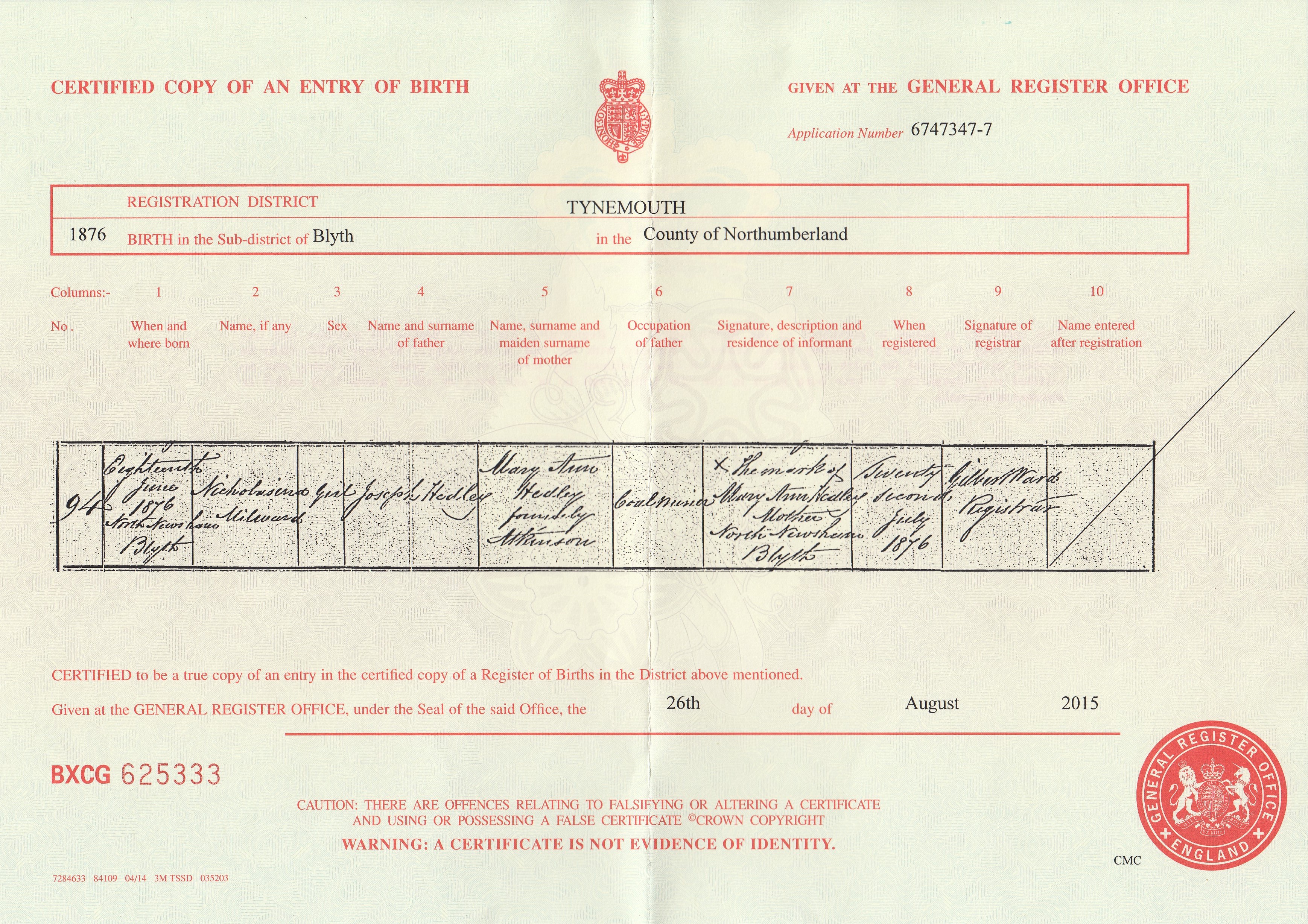 Birth Cert for John ..>