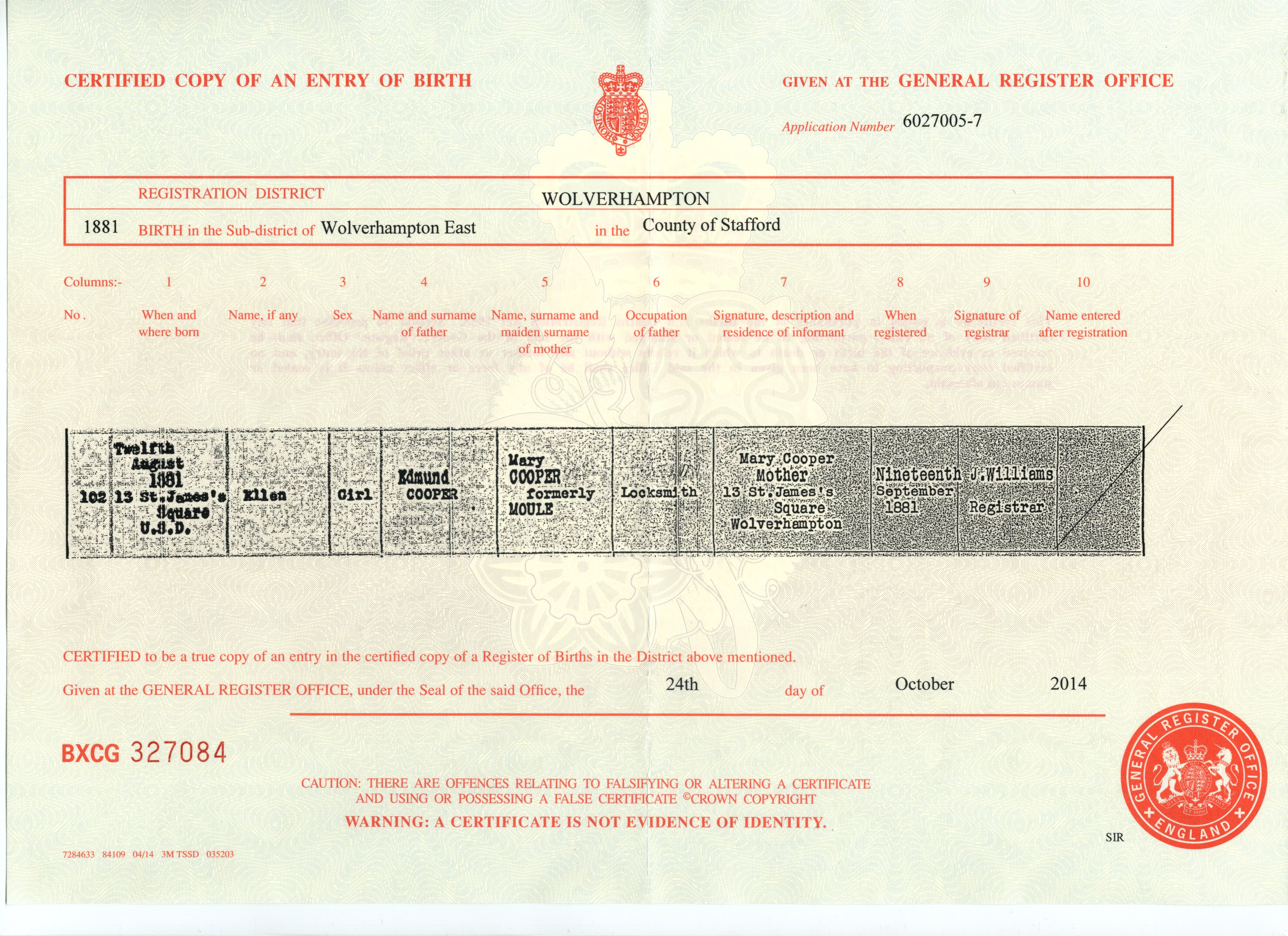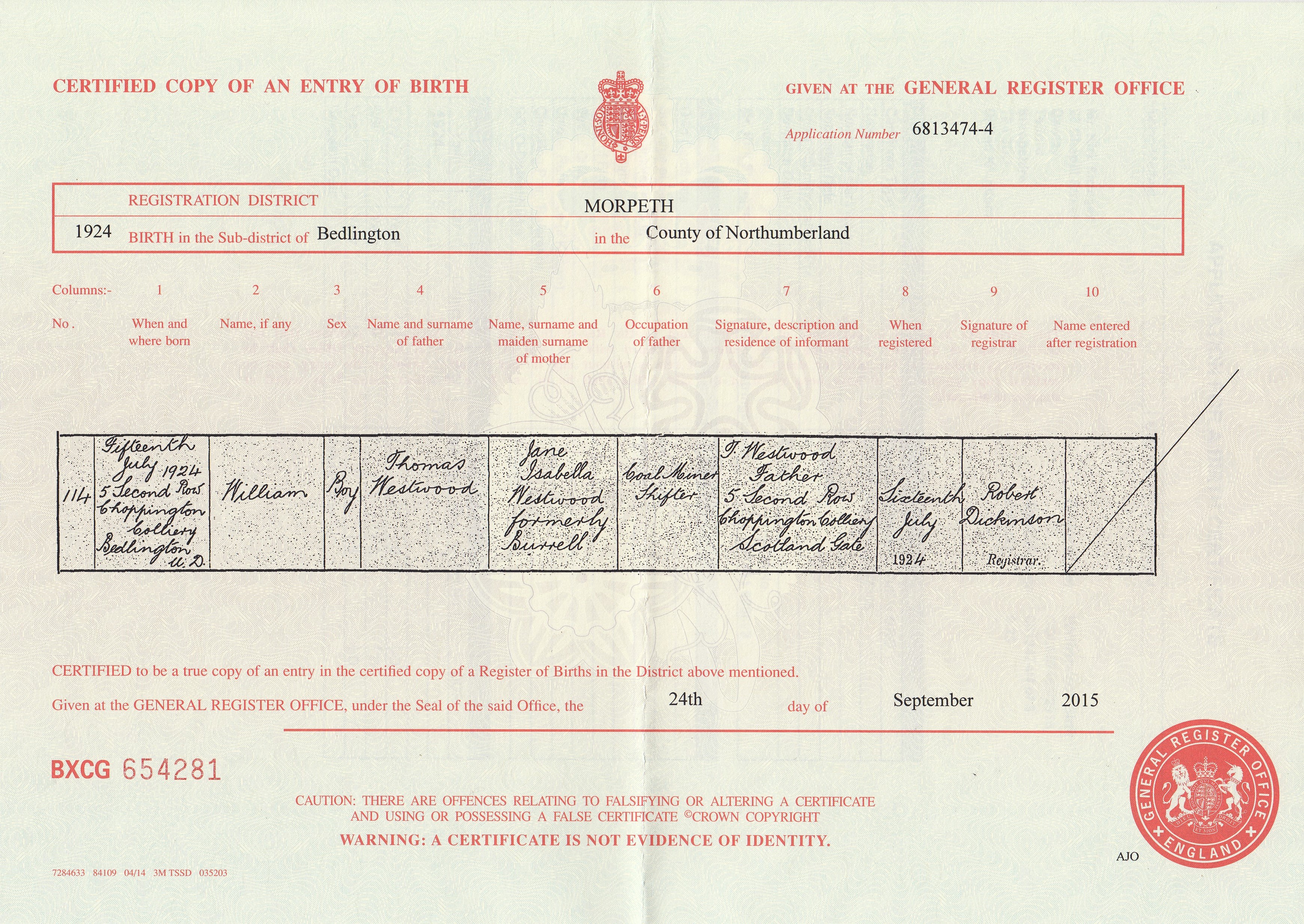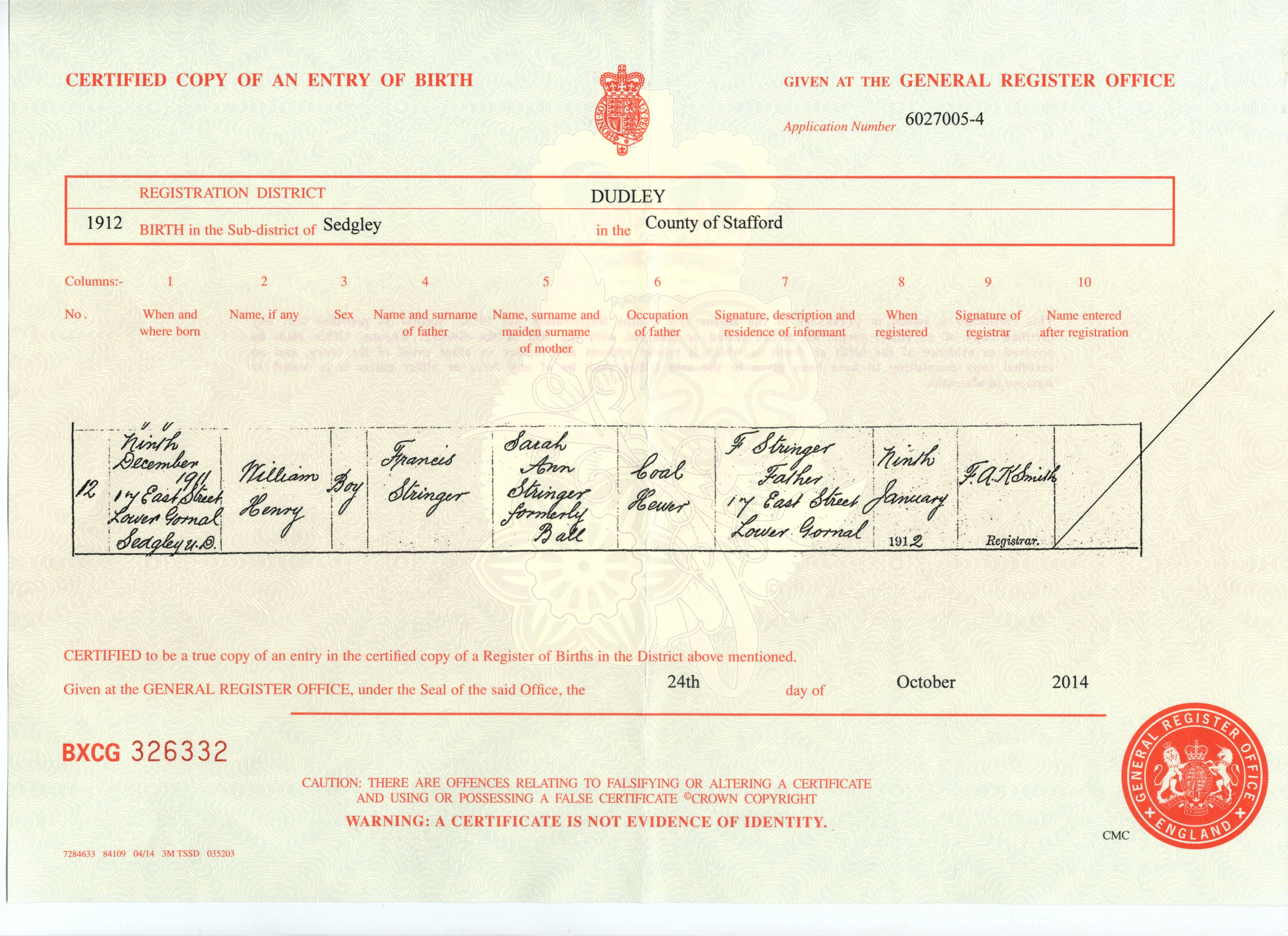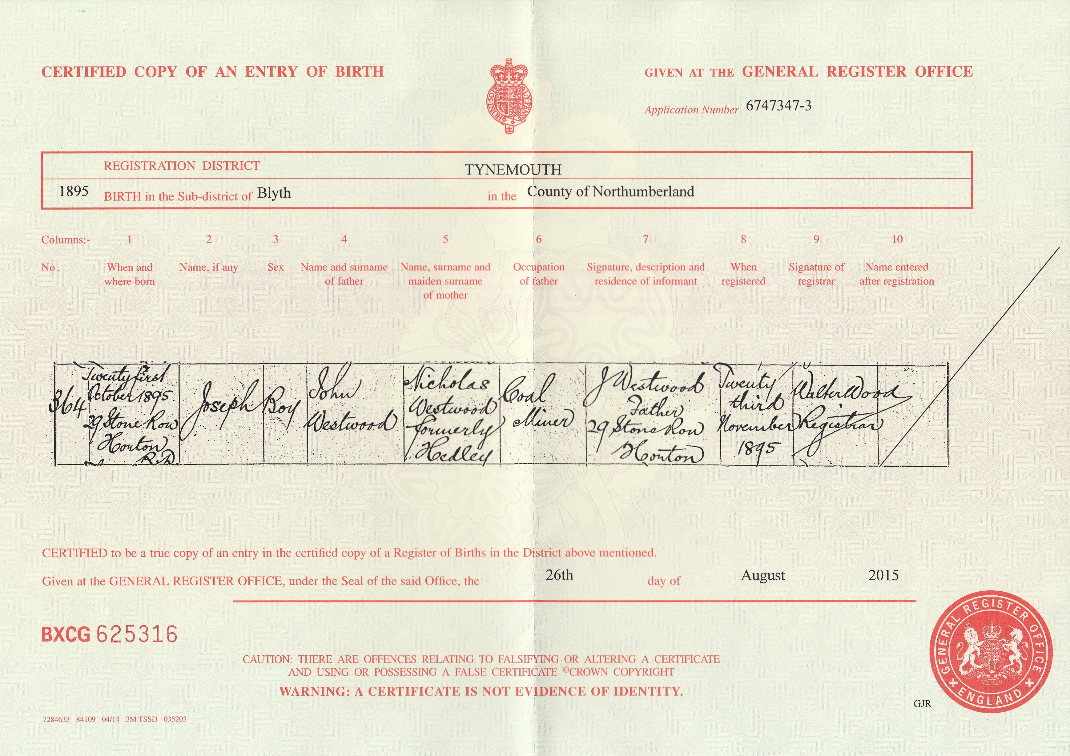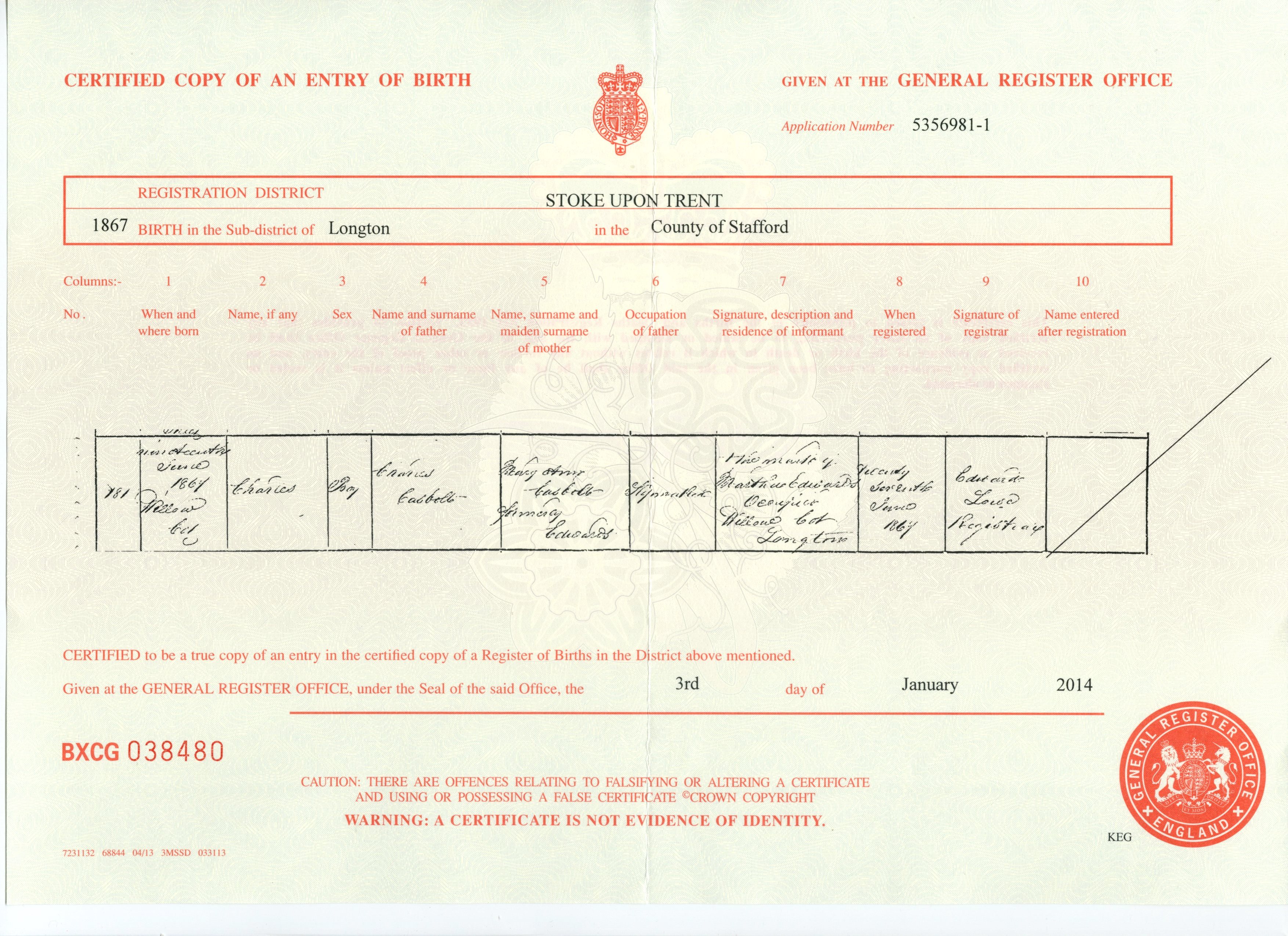 Birth Cert for John ..>