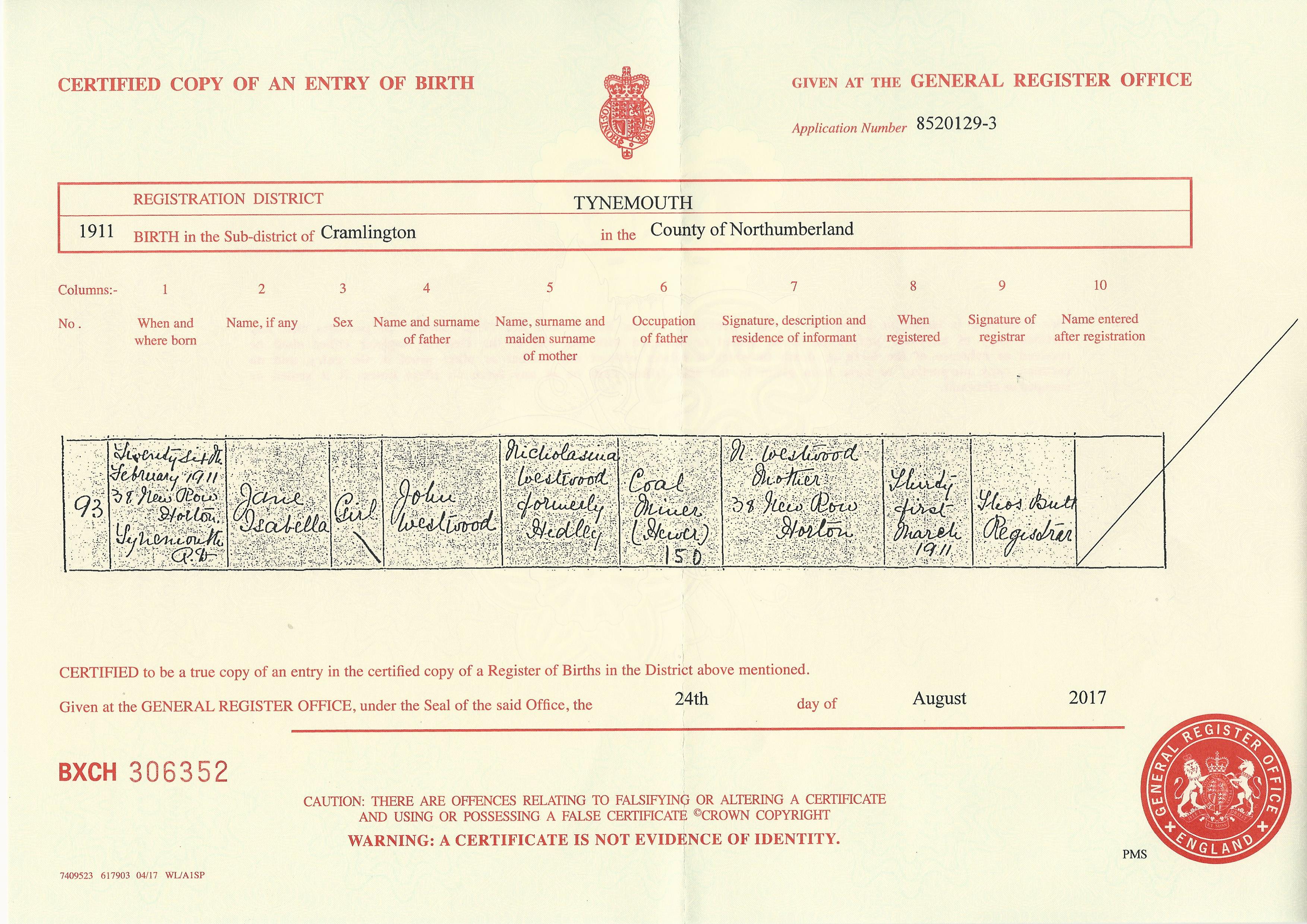 1911 Jane Westwood B..>