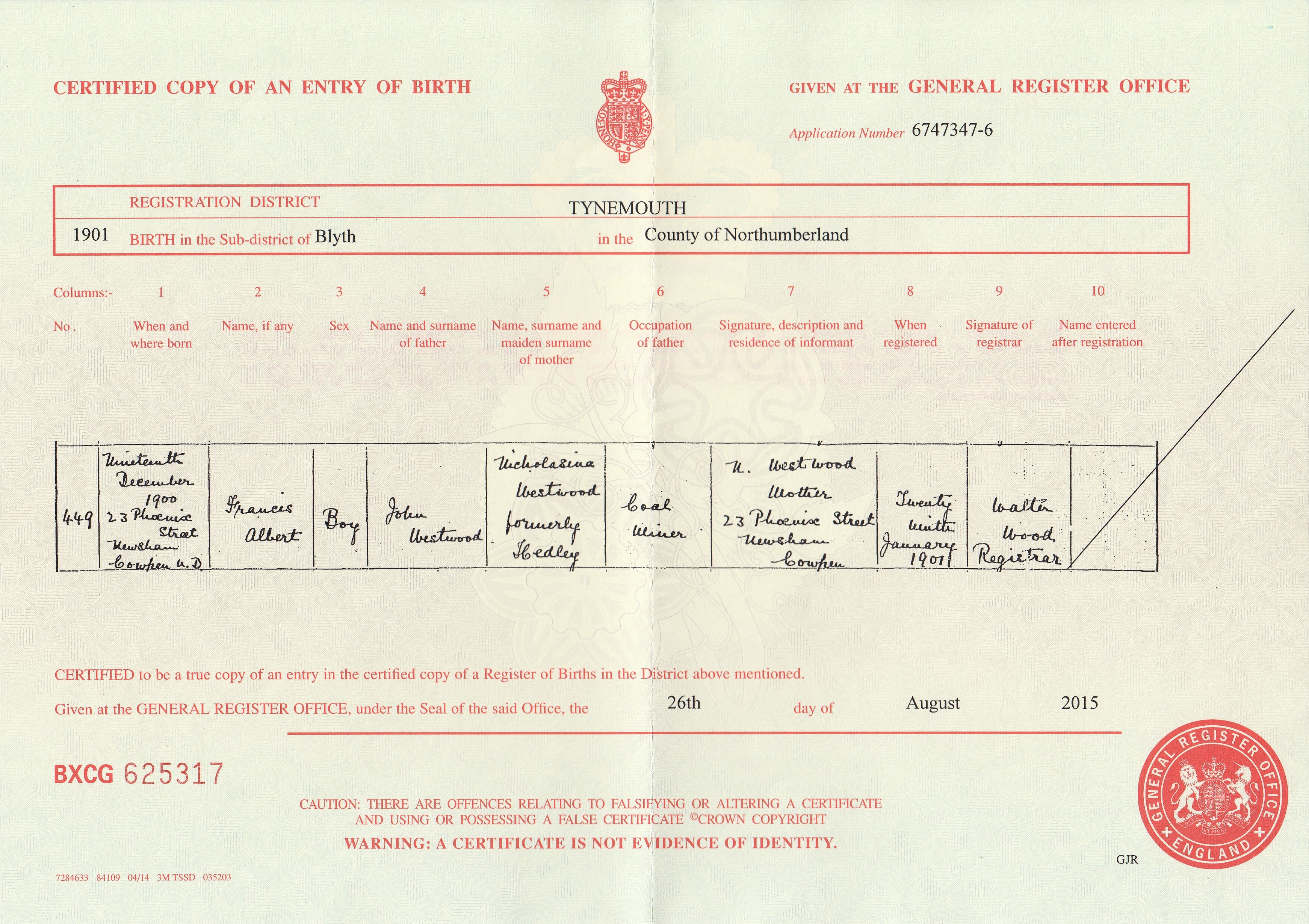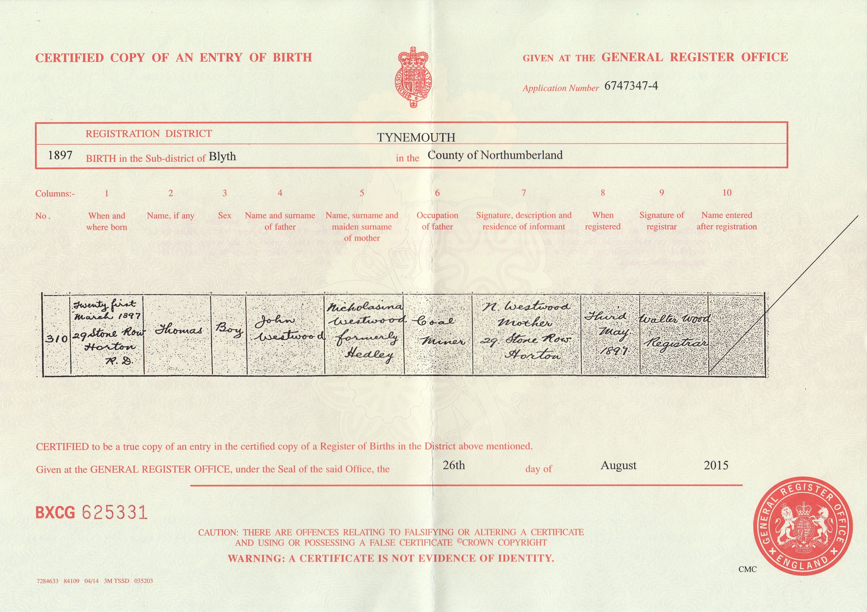 John Westwood Birth ..>