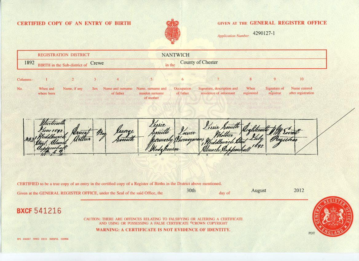 Arthur Smith Birth c..>