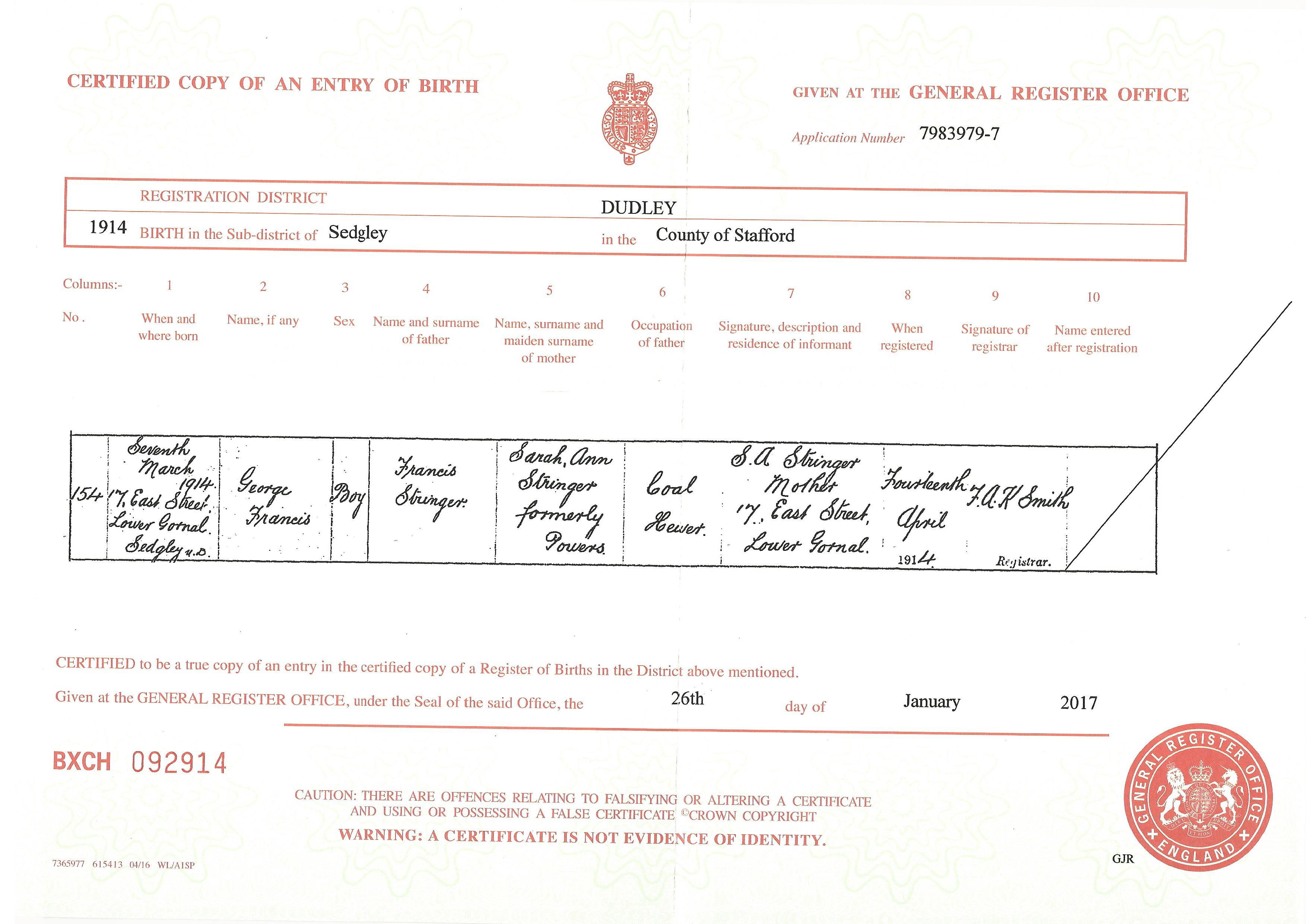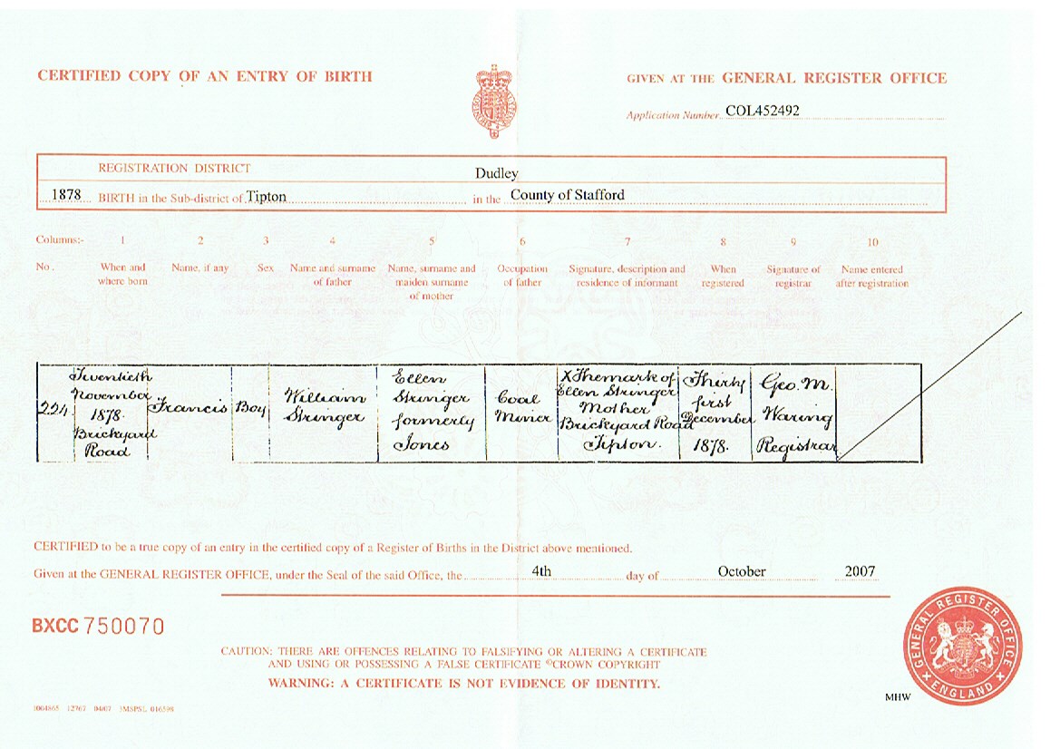 Francis Stringer bir..>