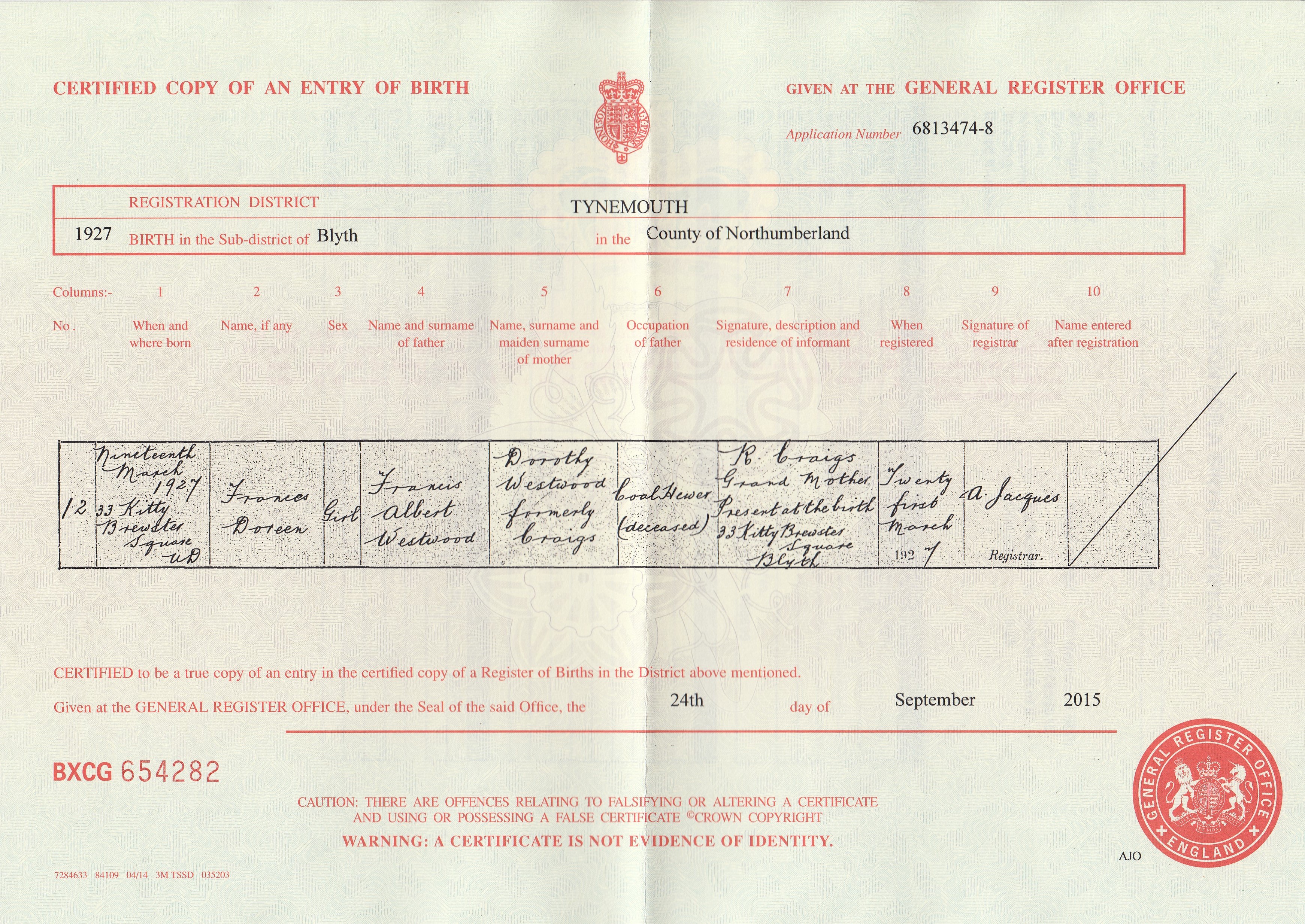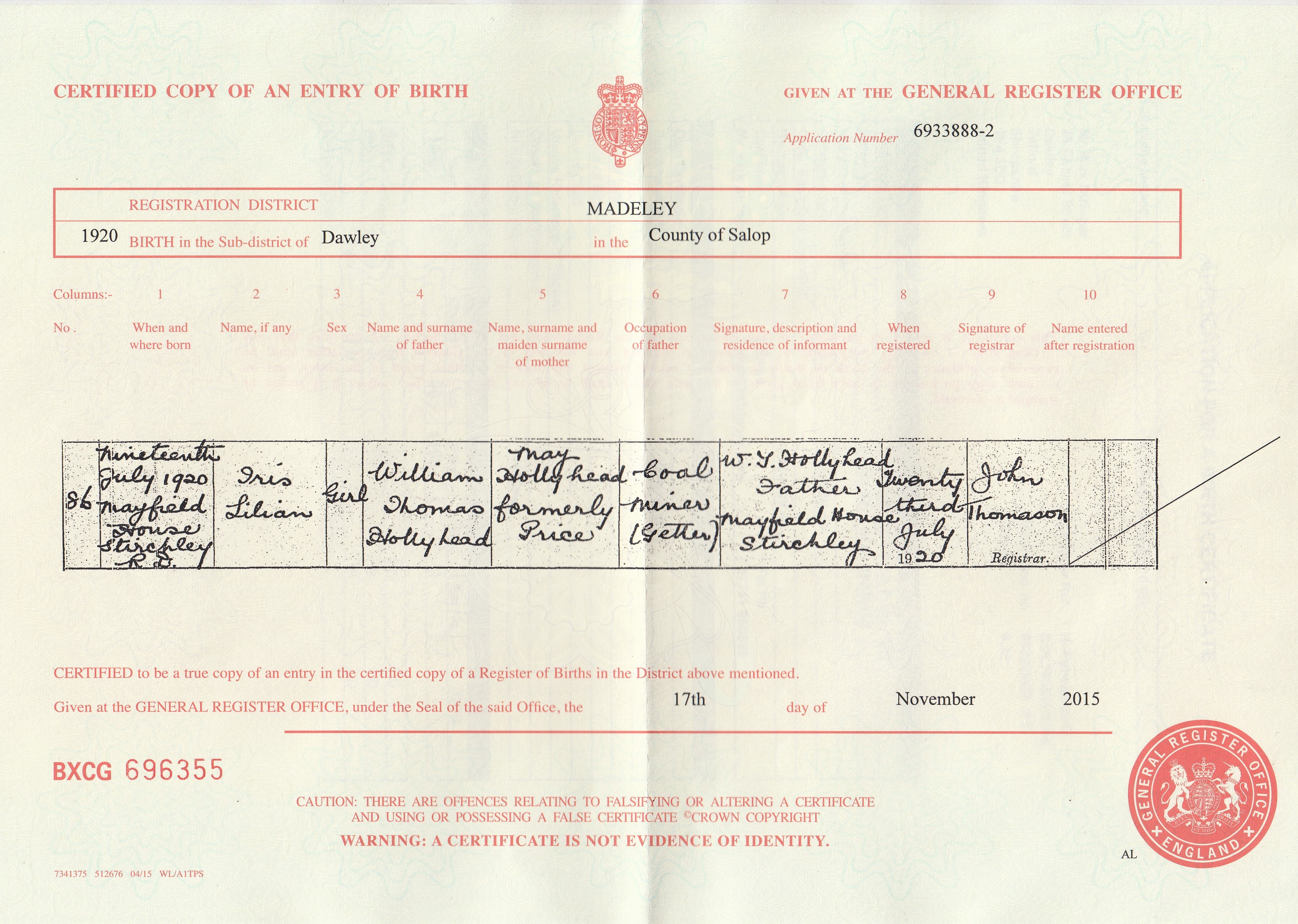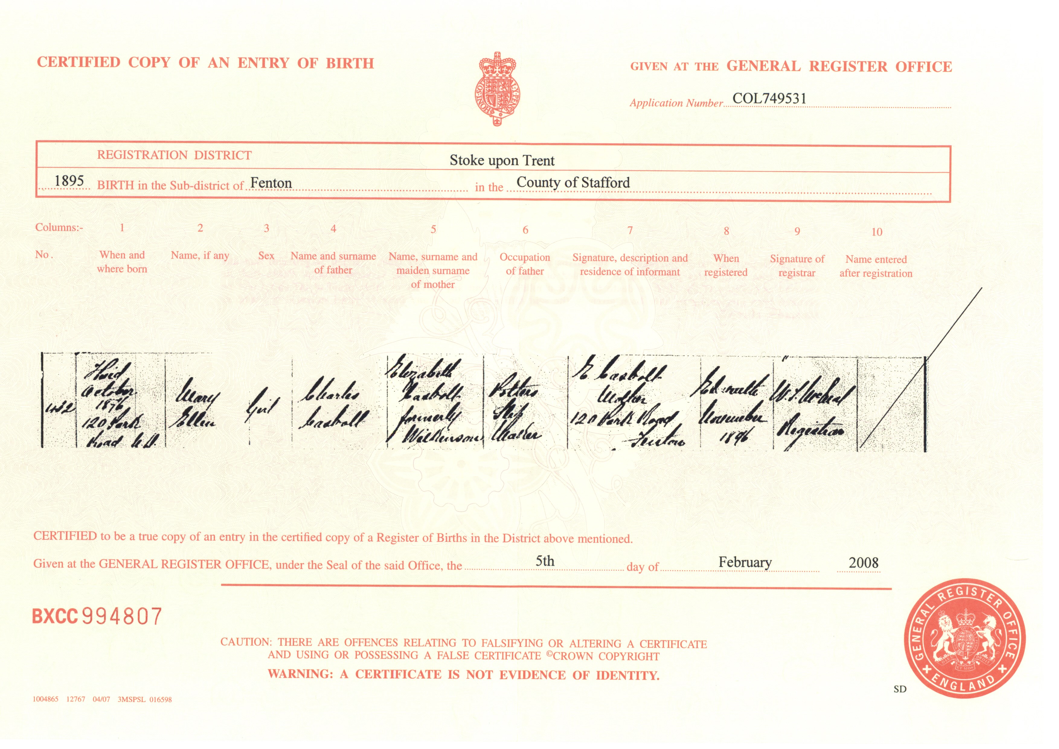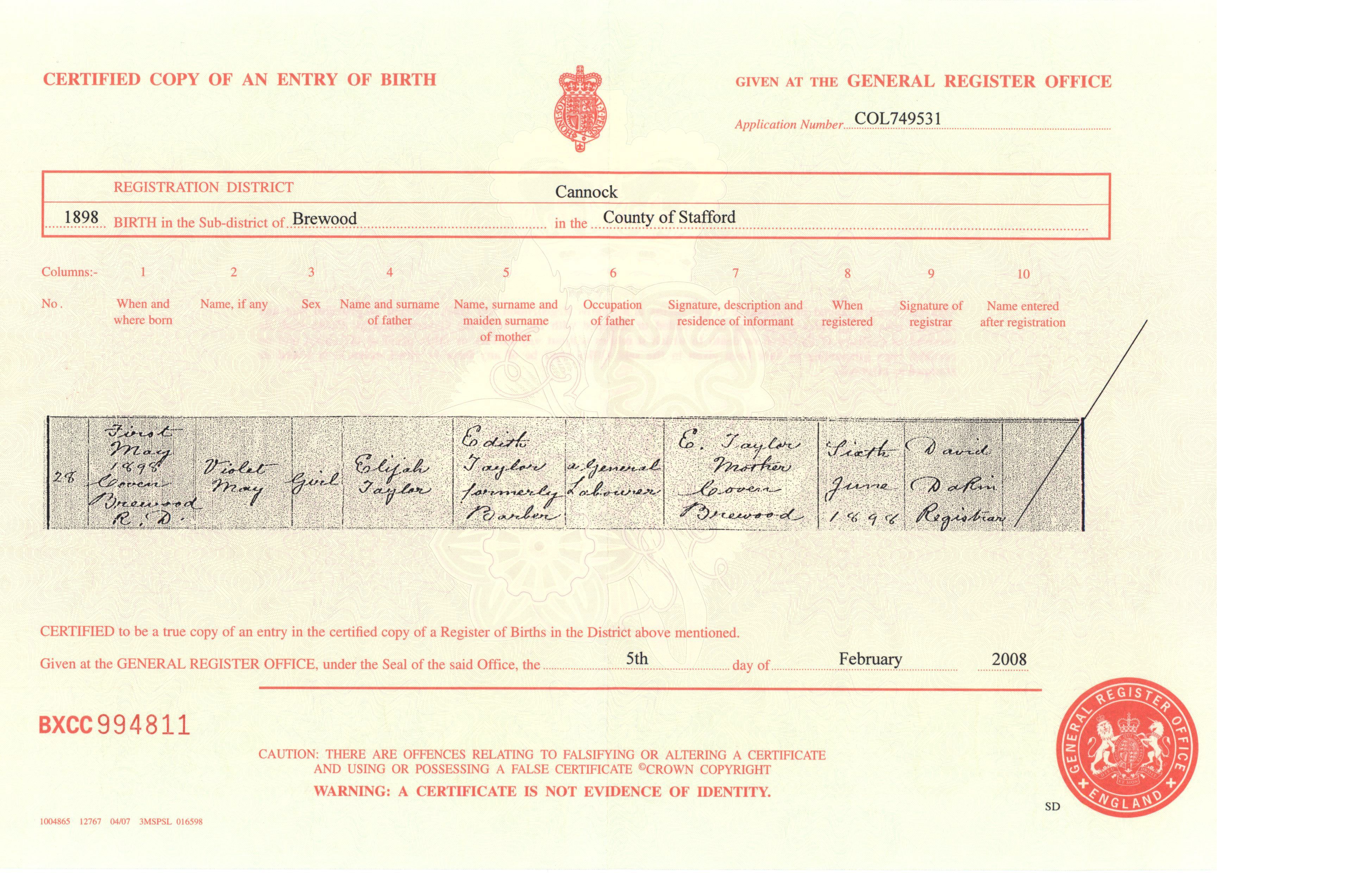 Kayleigh Birth Cert ..>
