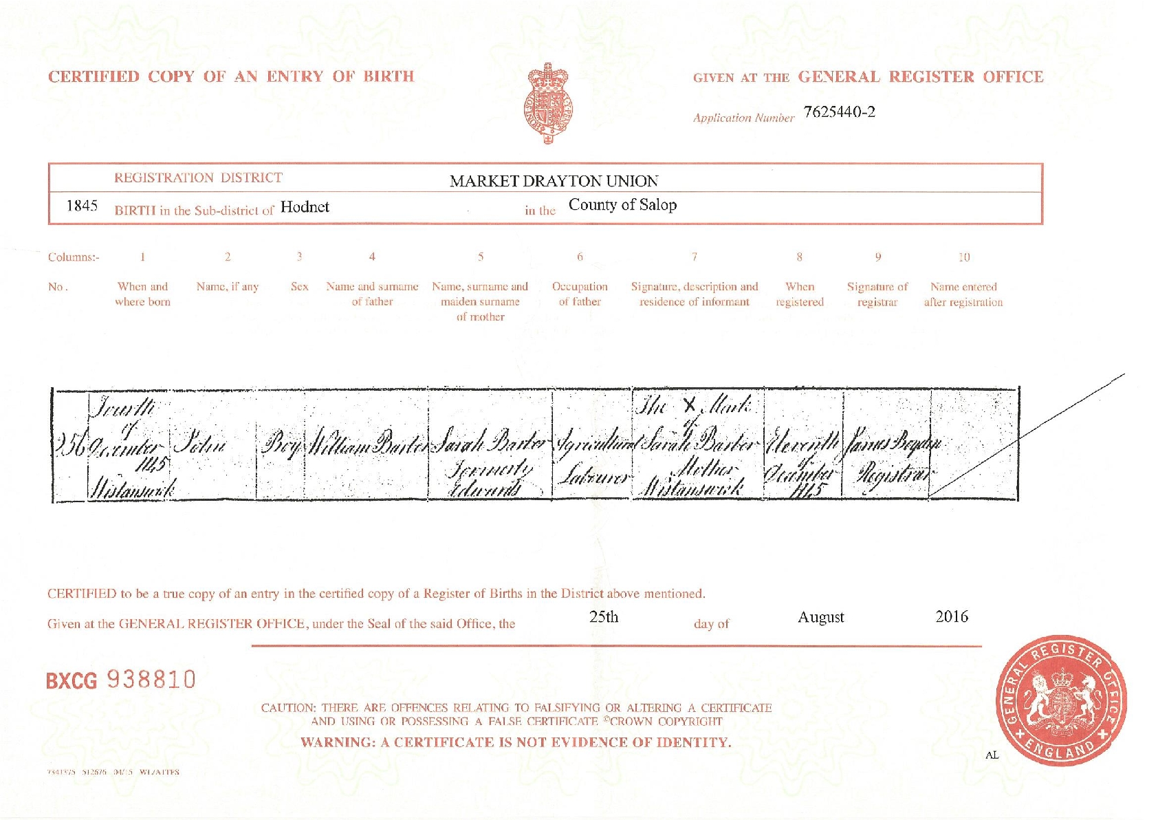 John Barber Birth Ce..>
